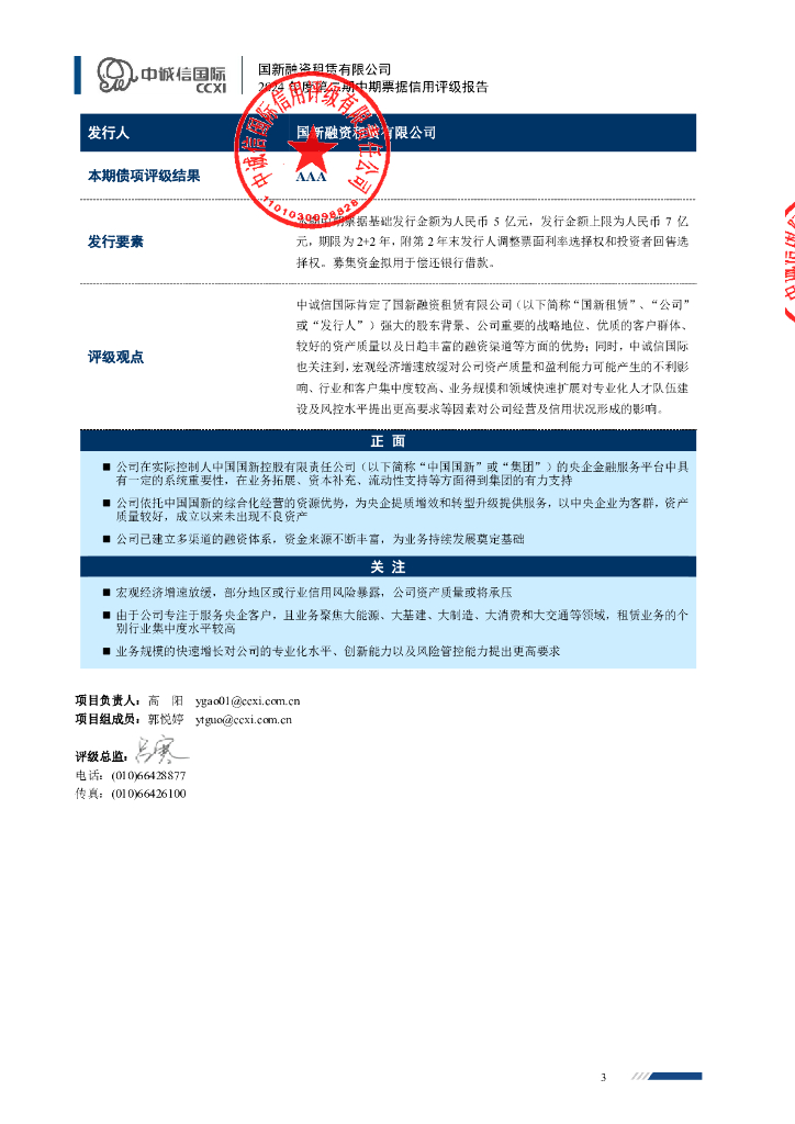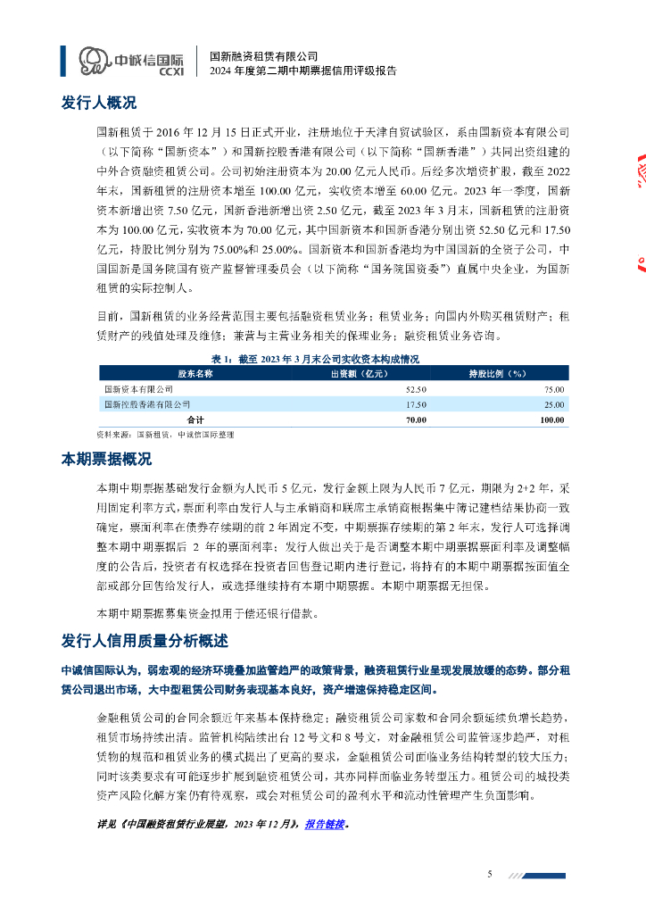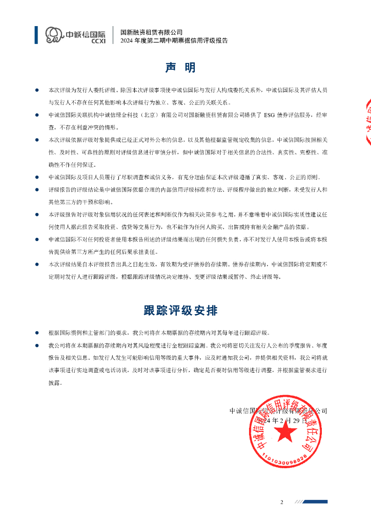 中诚信:国新融资租赁有限公司2024年度第二期中期票据信用评级报告.pdf