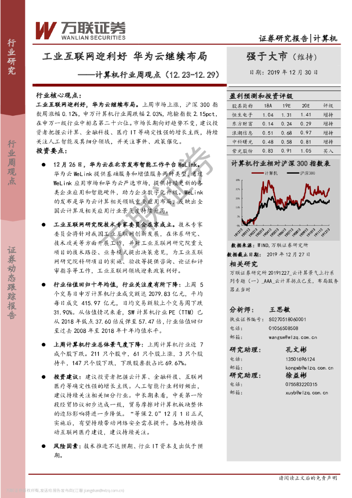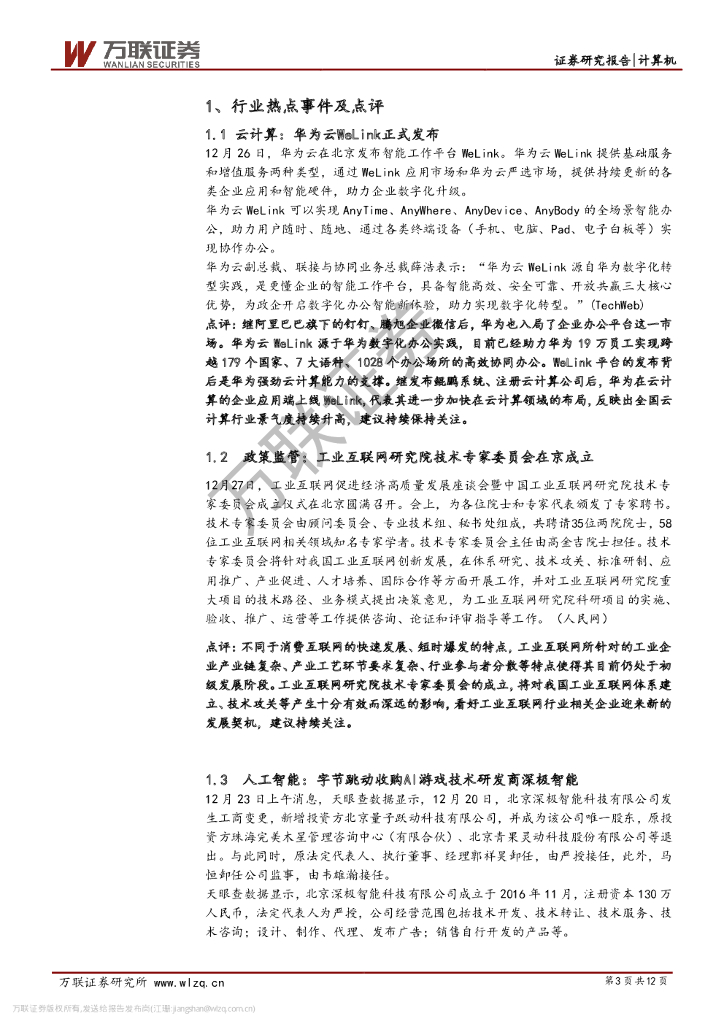 万联证券:计算机行业周观点:工业互联网迎利好 华为云继续布局.pdf