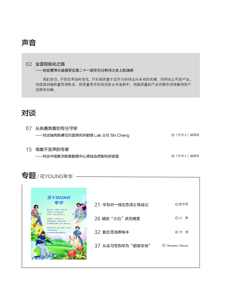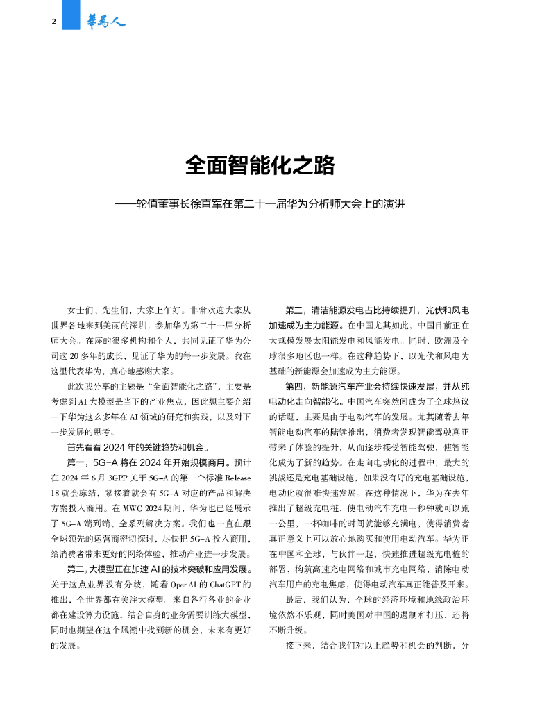 华为人:全面智能化之路——轮值董事长徐直军在第二十一届华为分析师大会上的演讲-花YOUNG年华(2024年5月第3期 总第372期).pdf