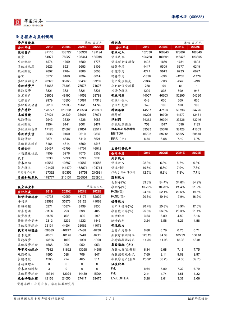 华安证券:海螺水泥(600585)-营收快速增长,在手现金充足.pdf