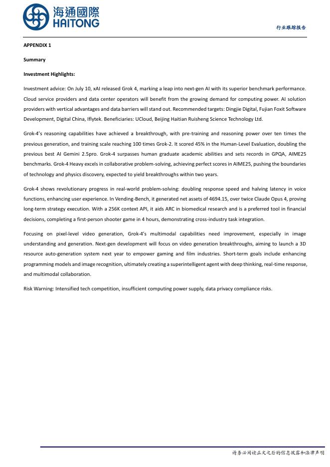 海通国际:计算机行业跟踪报告:Grok-4引领AI进阶,掘金算力与垂直领域赛道.pdf