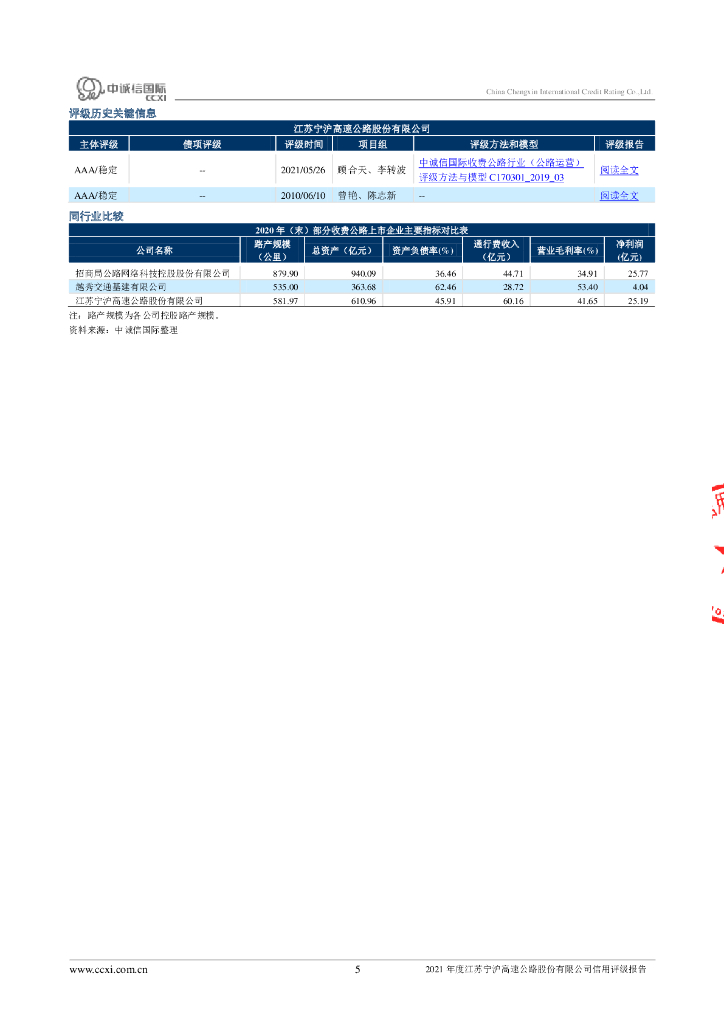 中诚信:2021年度江苏宁沪高速公路股份有限公司信用评级报告.pdf