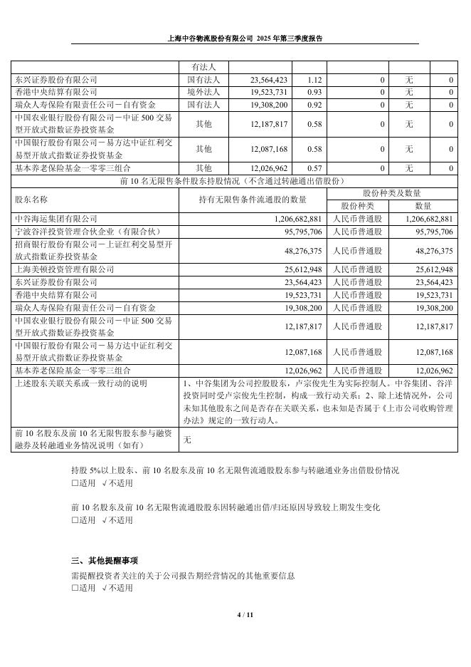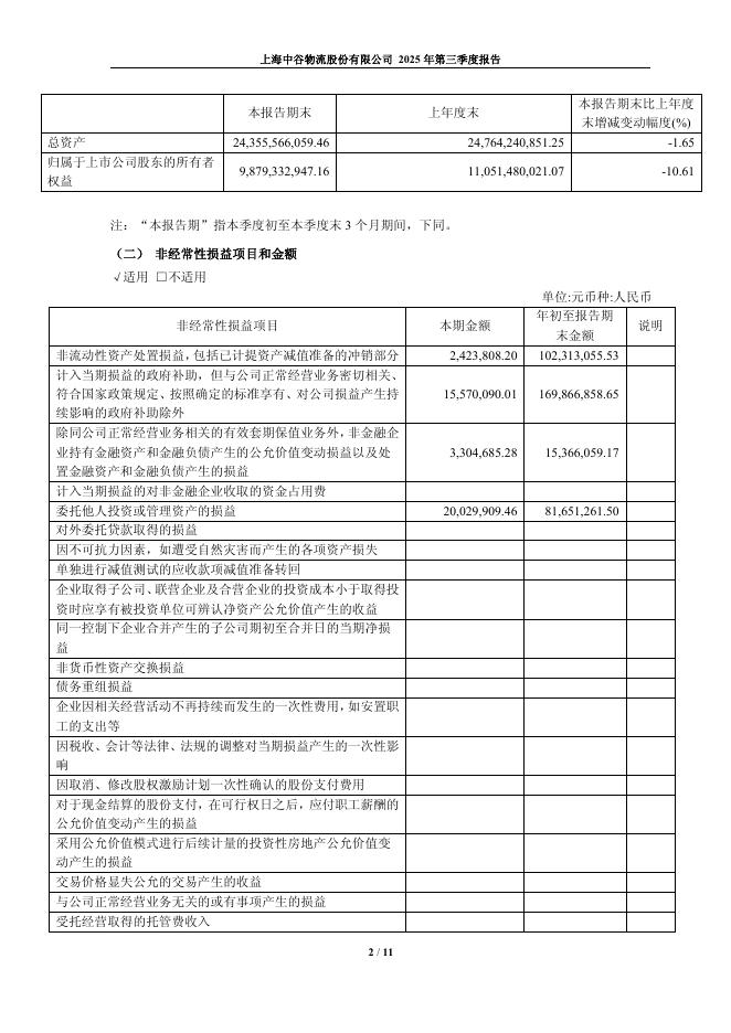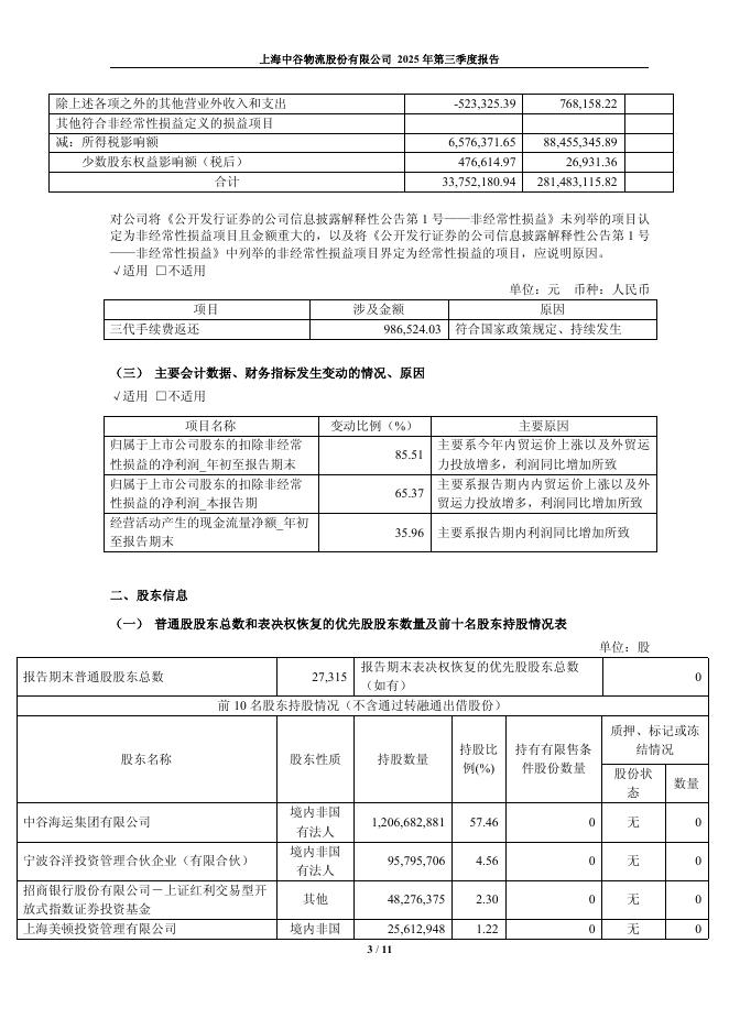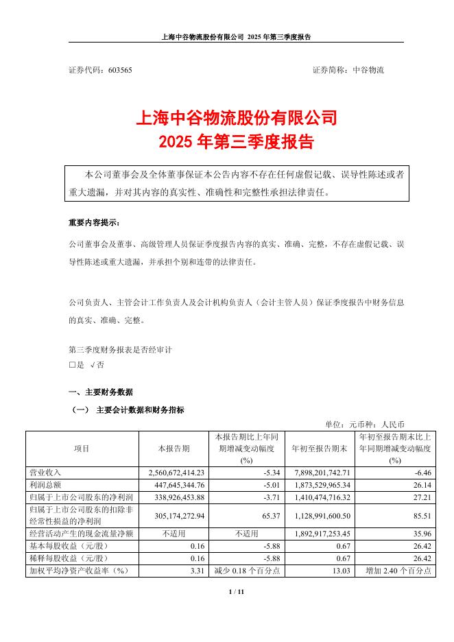 603565-中谷物流:2025年第三季度报告.pdf