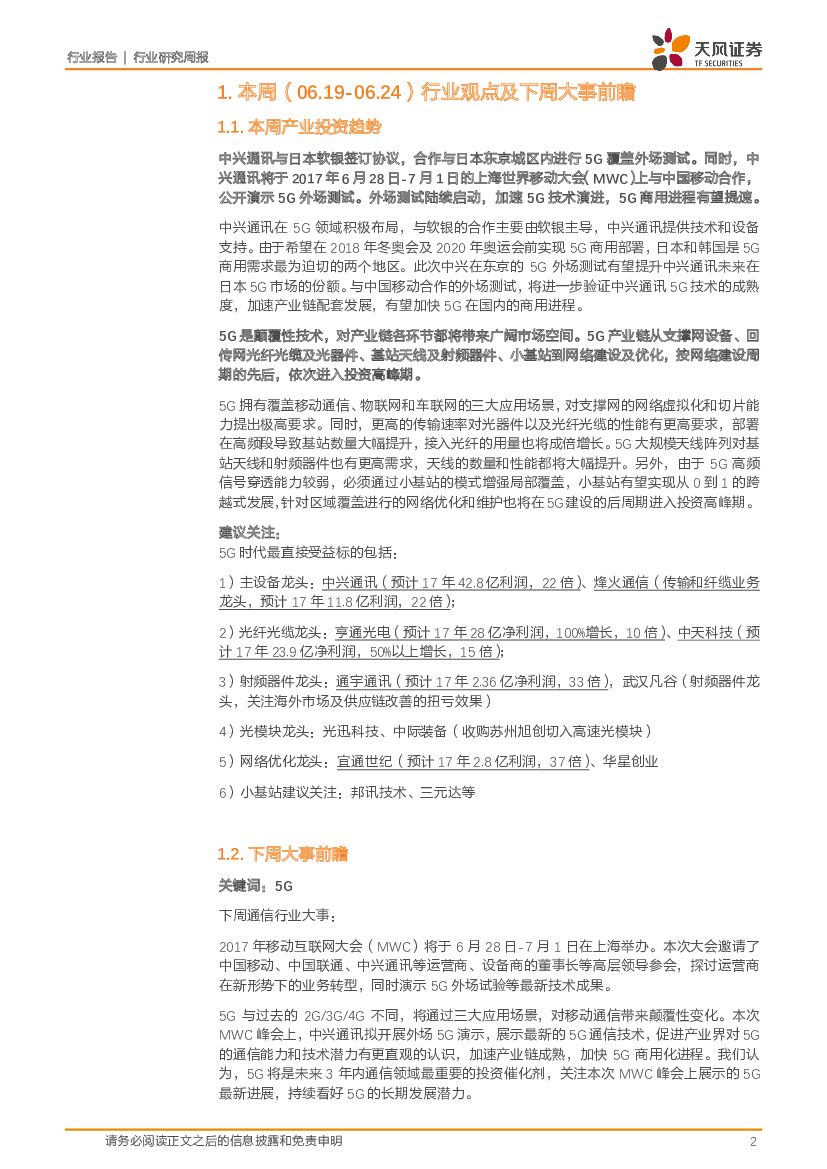 天风证券:通信行业研究周报:外场测试陆续启动,5G风口将至,产业投资机会显现.pdf