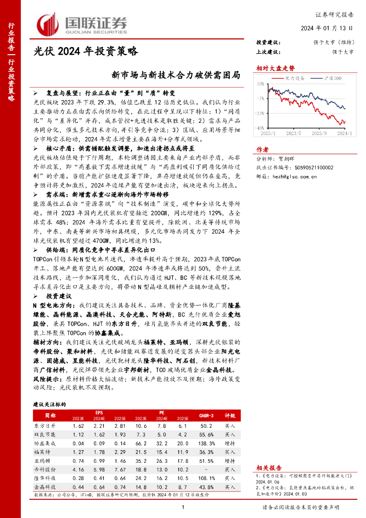 国联证券:光伏2024年投资策略:新市场与新技术合力破供需困局.pdf