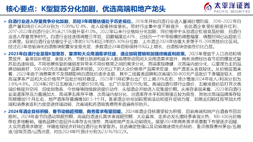 太平洋证券:白酒行业策略报告:K型复苏分化加剧,优选高端和地产酒龙头.pdf