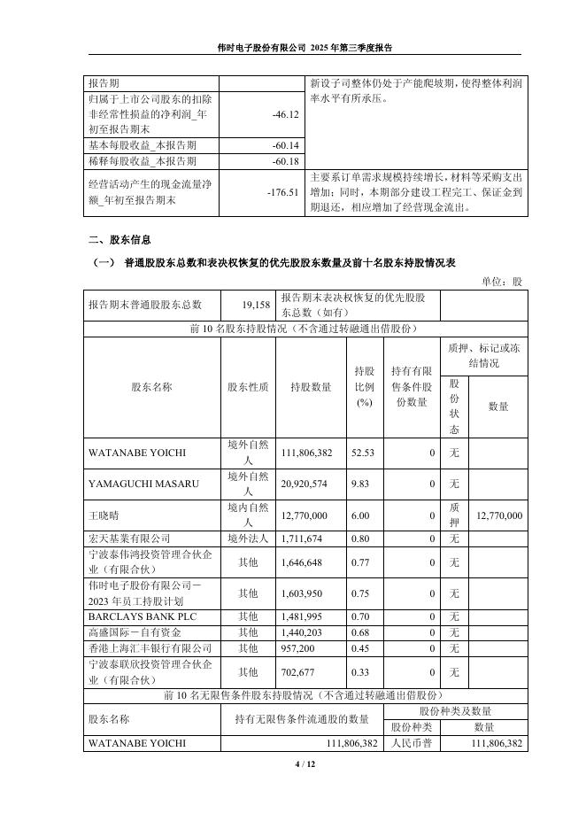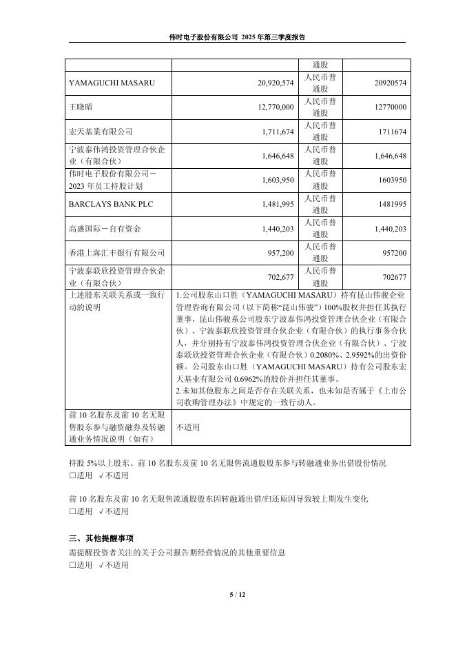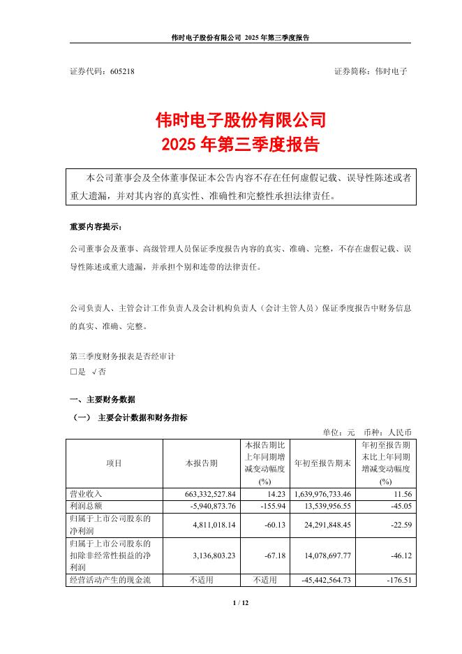 605218-伟时电子:伟时电子股份有限公司2025年第三季度报告.pdf