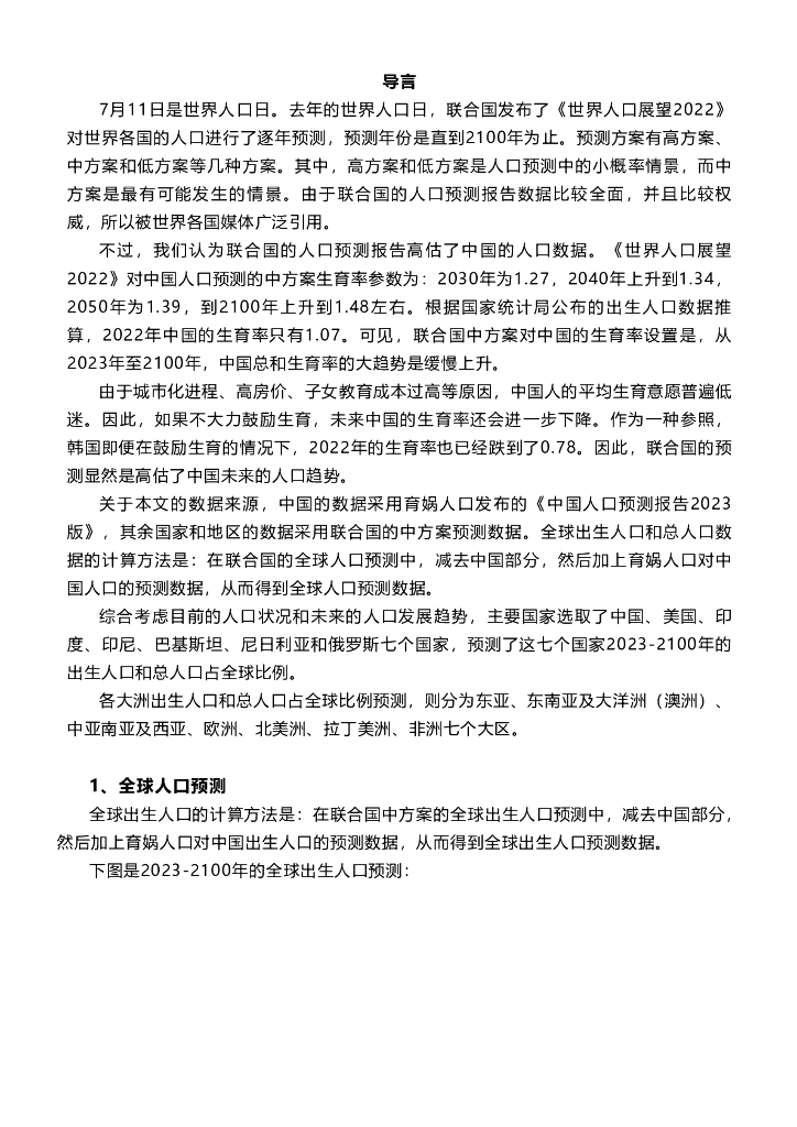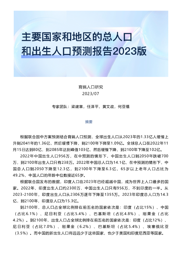 育娲人口研究:主要国家和地区的总人口和出生人口预测报告2023版.pdf