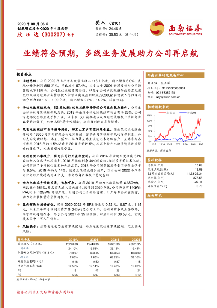 西南证券:欣旺达(300207)-业绩符合预期,多线业务发展助力公司再启航.pdf