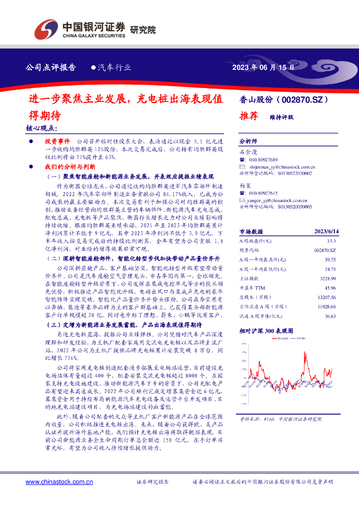 中国银河:香山股份(002870)-进一步聚焦主业发展,充电桩出海表现值得期待.pdf