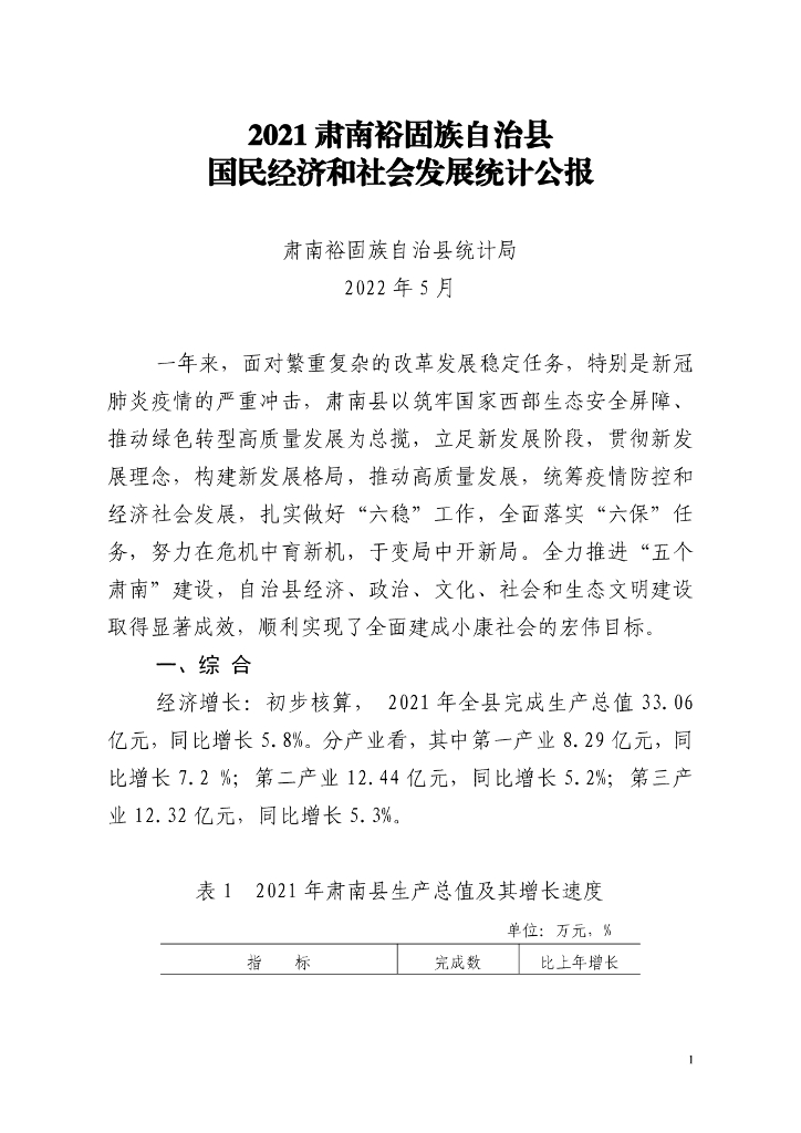 2021肃南裕固族自治县国民经济和社会发展统计公报.pdf