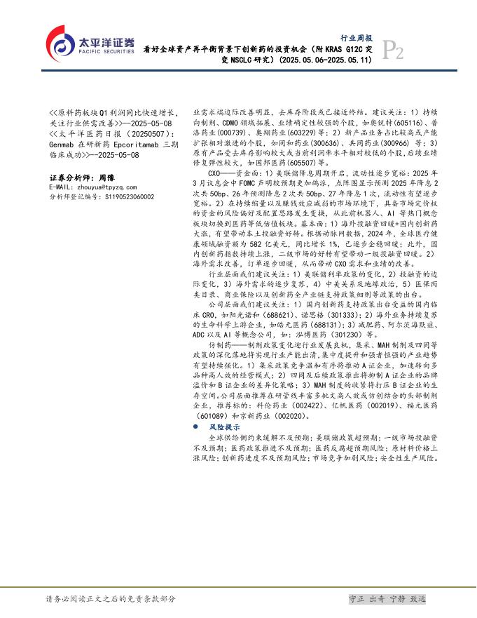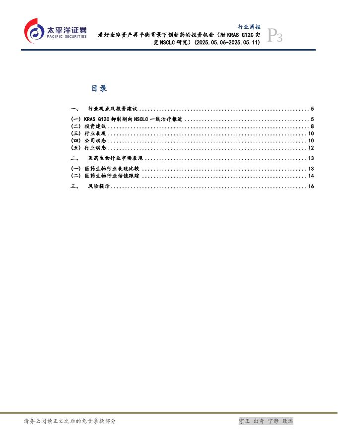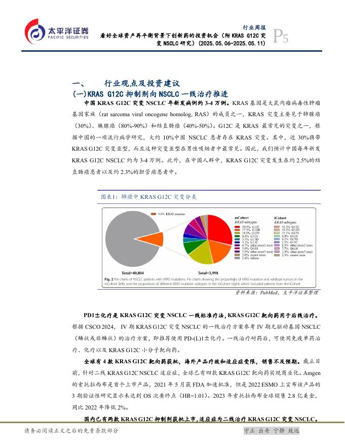 太平洋证券:医药行业周报:看好全球资产再平衡背景下创新药的投资机会(附KRASG12C突变NSCLC研究).pdf