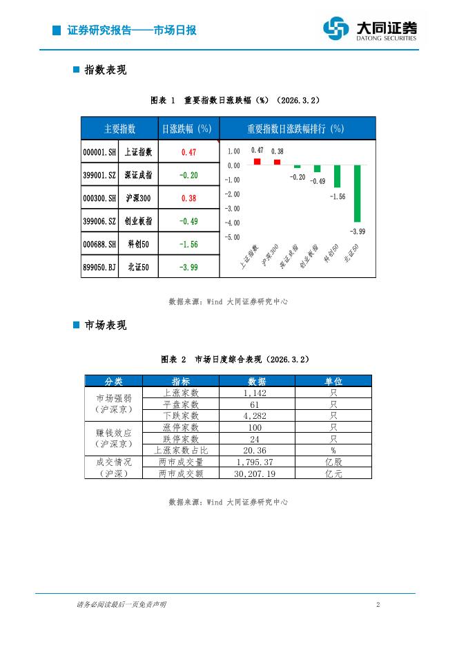 大同证券:市场日报:三大指数大幅低开后拉升两市量能超三万亿-260303.pdf