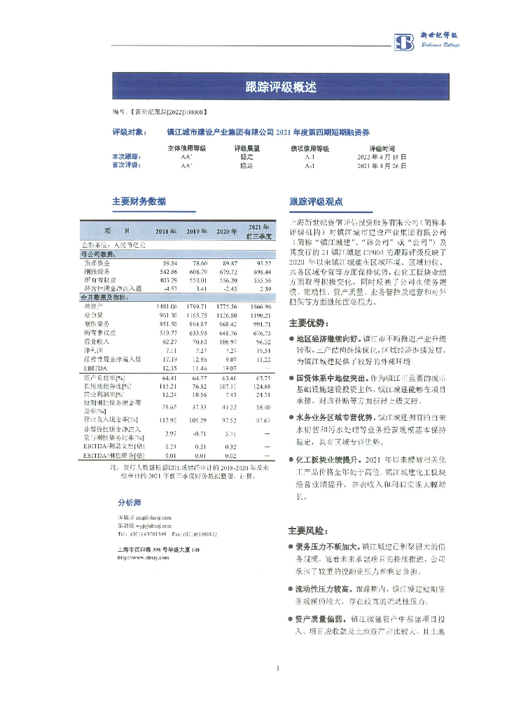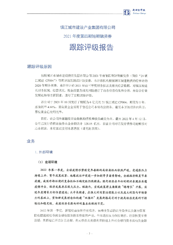 新世纪:镇江城市建设产业集团有限公司2021年度第四期短期融资券跟踪评级报告.pdf