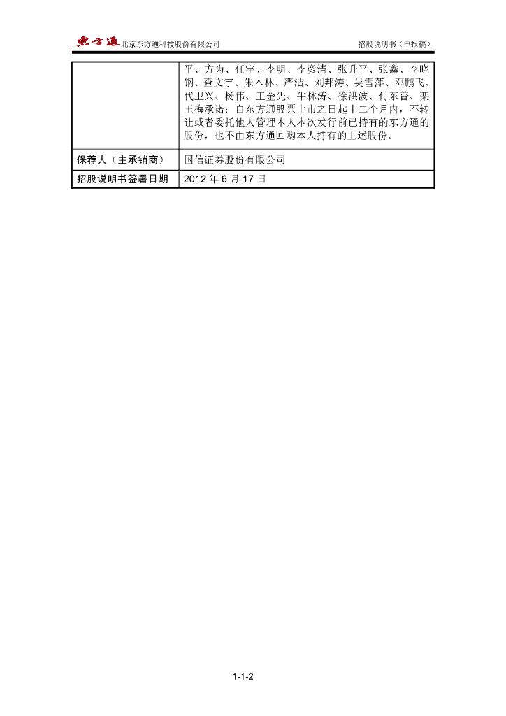 北京东方通科技股份有限公司深交所创业板IPO上市招股说明书.pdf