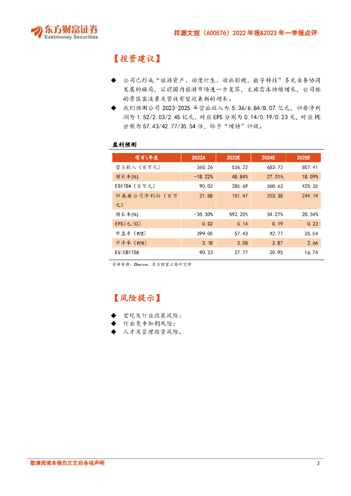东方财富证券:祥源文旅(600576)-2022年报&2023年一季报点评:发力文旅领域,23Q1营收实现高增长.pdf