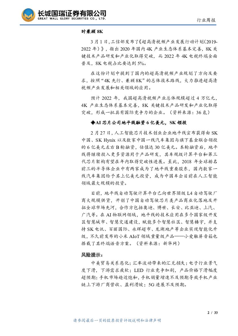 长城国瑞证券:电子行业双周报2019年第4期(总第4期):工信部发超高清视频内容产业行动计划,将大力发展4K产业.pdf