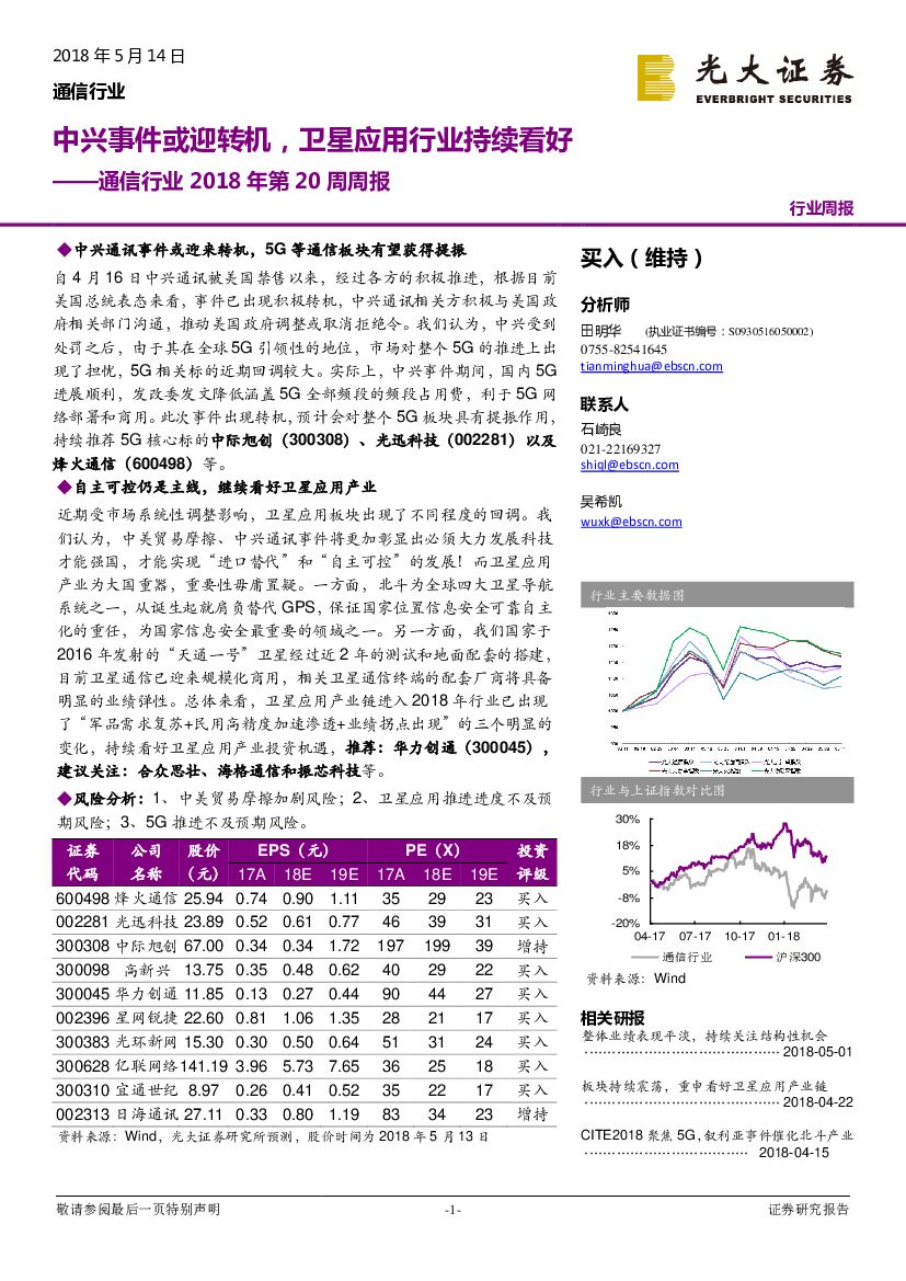 光大证券:通信行业2018年第20周周报:中兴事件或迎转机,卫星应用行业持续看好.pdf