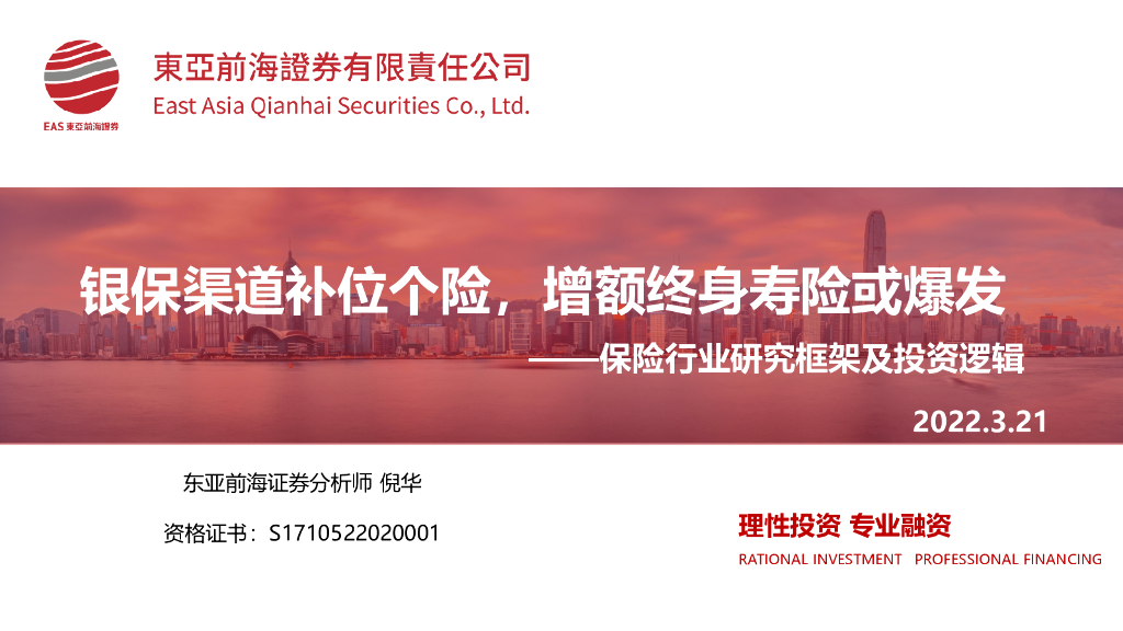 东亚前海证券:保险行业研究框架及投资逻辑:银保渠道补位个险,增额终身寿险或爆发.pdf