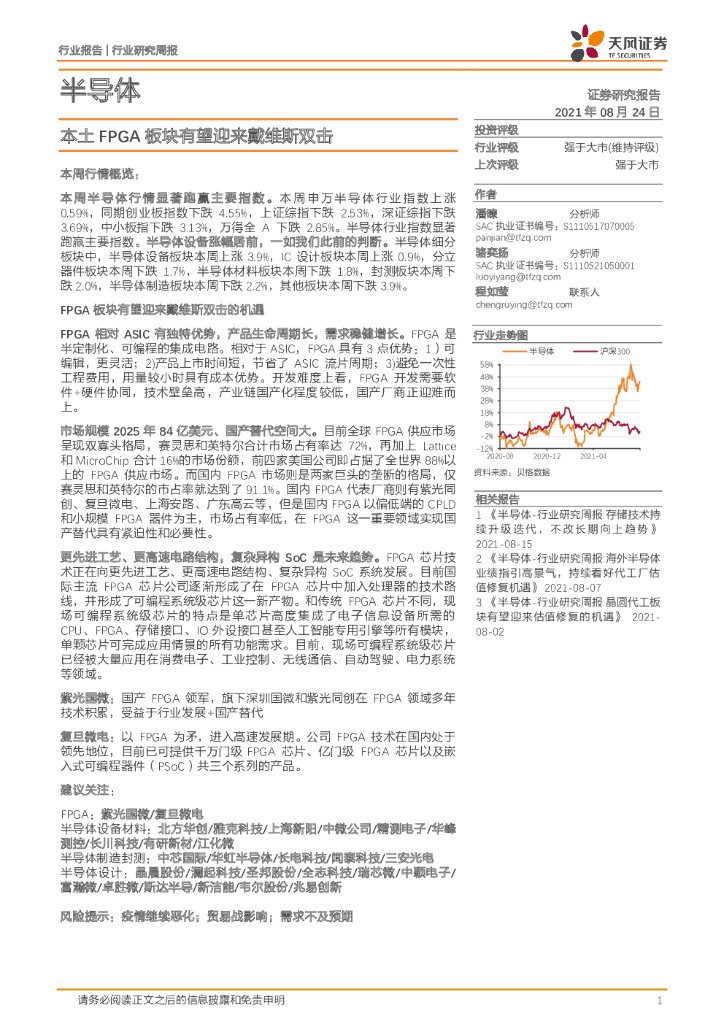 天风证券:半导体行业研究周报:本土FPGA板块有望迎来戴维斯双击.pdf