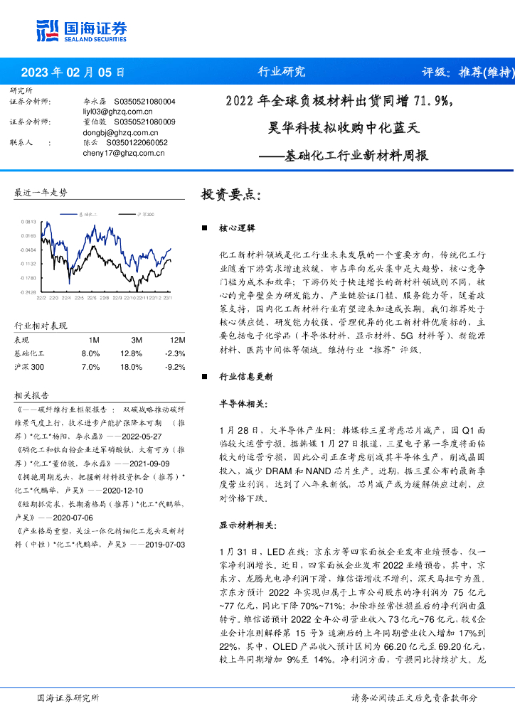 国海证券:基础化工行业新材料周报:2022年全球负极材料出货同增71.9%,昊华科技拟收购中化蓝天.pdf