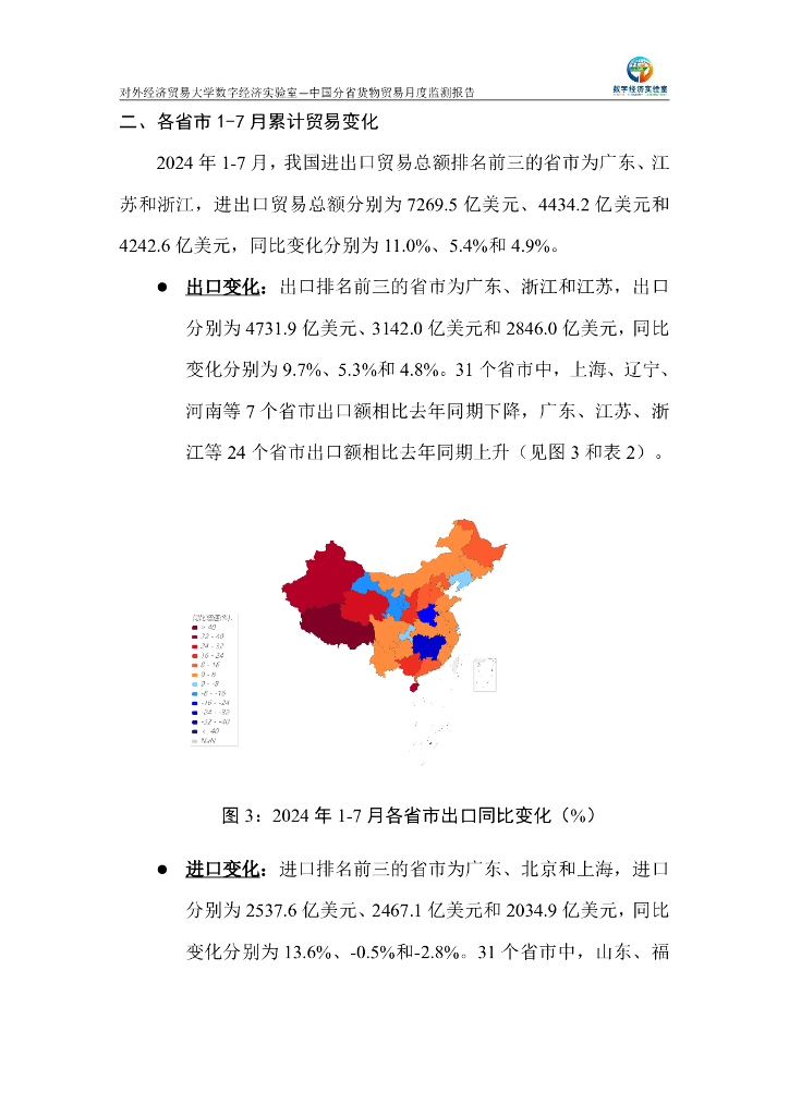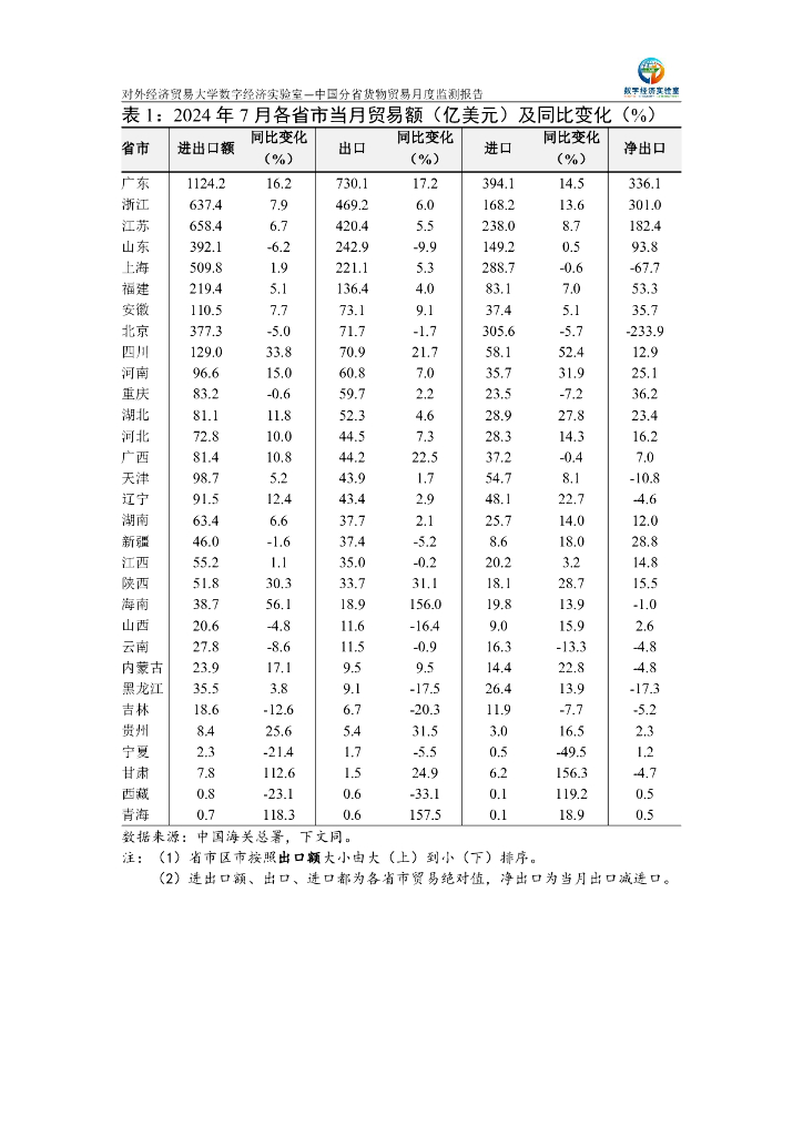 对外经济贸易大学:中国分省货物贸易月度监测报告(2024年1-7月).pdf