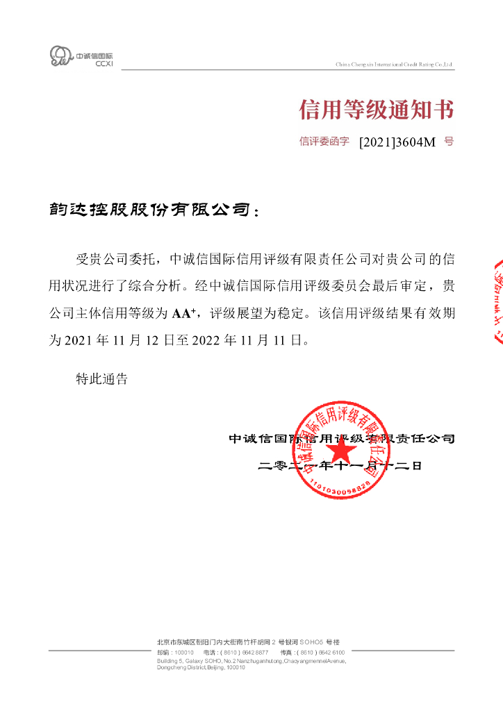 中诚信:2021年度韵达控股股份有限公司信用评级报告.pdf