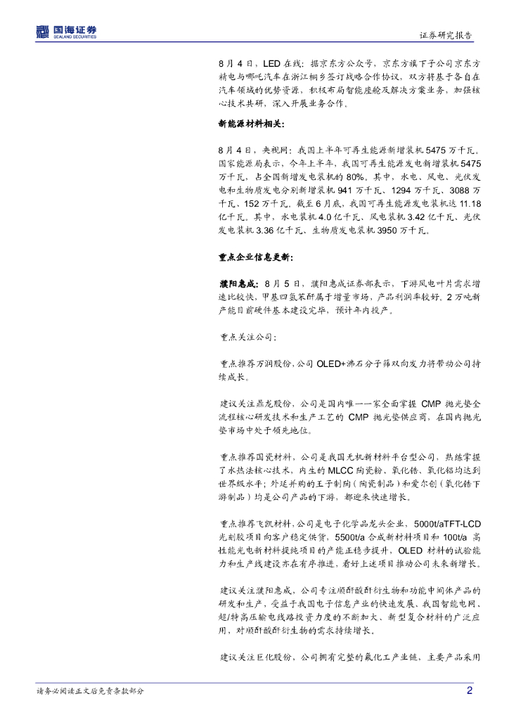 国海证券:化工新材料周报:我国上半年可再生能源新增装机5475万千瓦,濮阳惠成2万吨甲基四氢苯酐预计年内投产.pdf