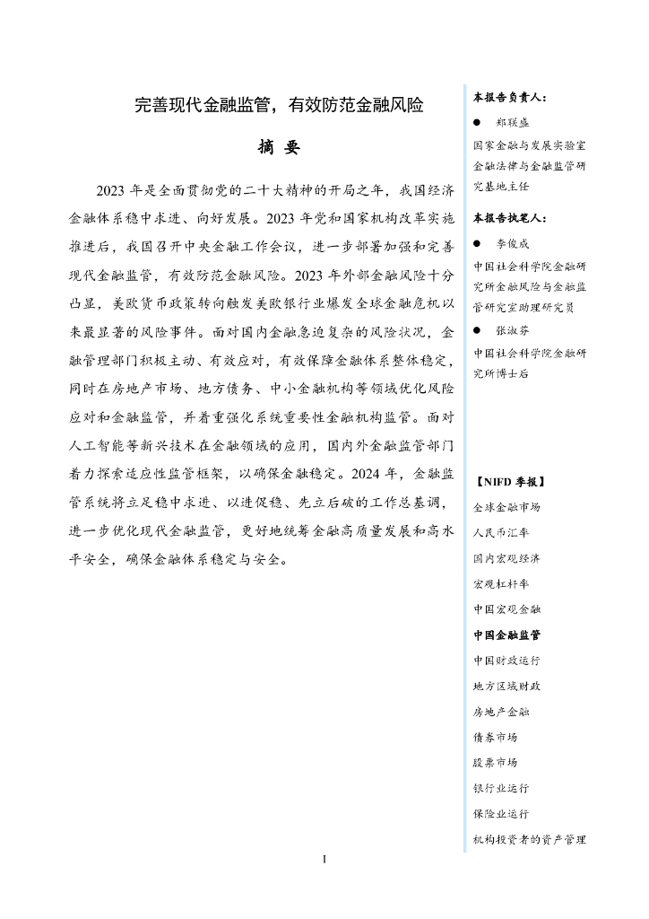NIFD季报:完善现代金融监管,有效防范金融风险——2023年度中国金融监管.pdf
