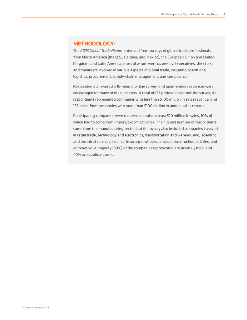 THOMSON REUTERS:2023企业全球贸易调查报告:贸易合规工作和技术的不断扩展(英文版).pdf