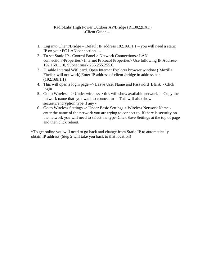 RadioLabs High Power Outdoor AP/Bridge (RL3022EXT) Client Guide.pdf