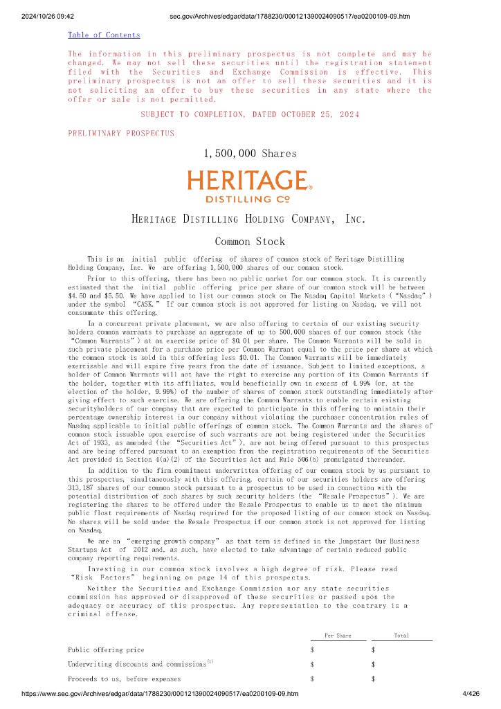 Heritage Distilling Holding Company, Inc.美股纳斯达克IPO上市招股说明书.pdf