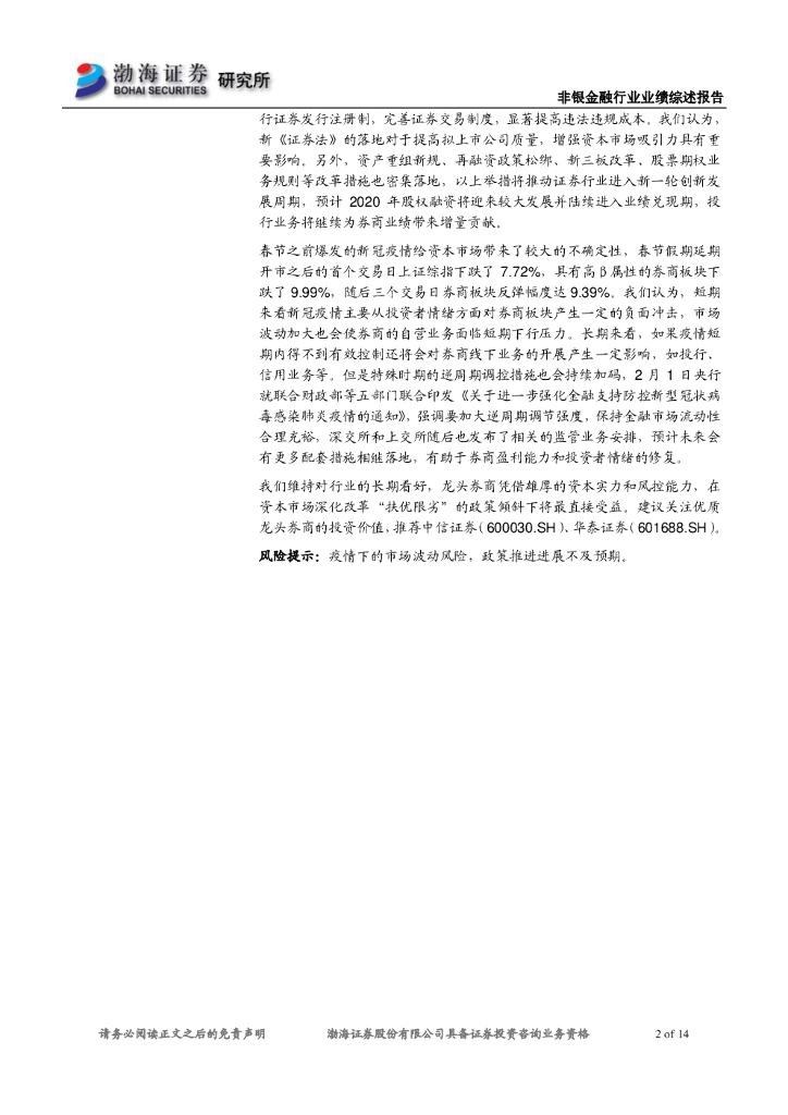 渤海证券:上市券商2019年年报前瞻:2019年业绩大幅增长,疫情不改长期投资价值.pdf