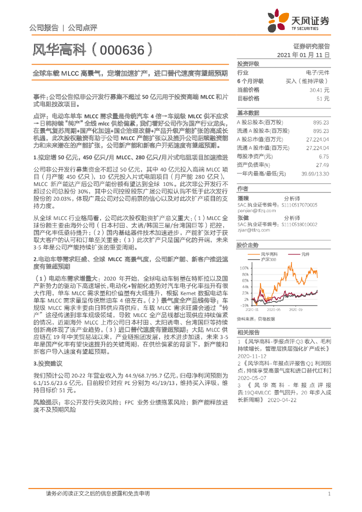 天风证券:风华高科(000636)-全球车载MLCC高景气,定增加速扩产,进口替代速度有望超预期.pdf