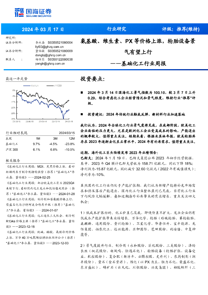 国海证券:基础化工行业周报:氨基酸、维生素、PX等价格上涨,轮胎设备景气有望上行.pdf