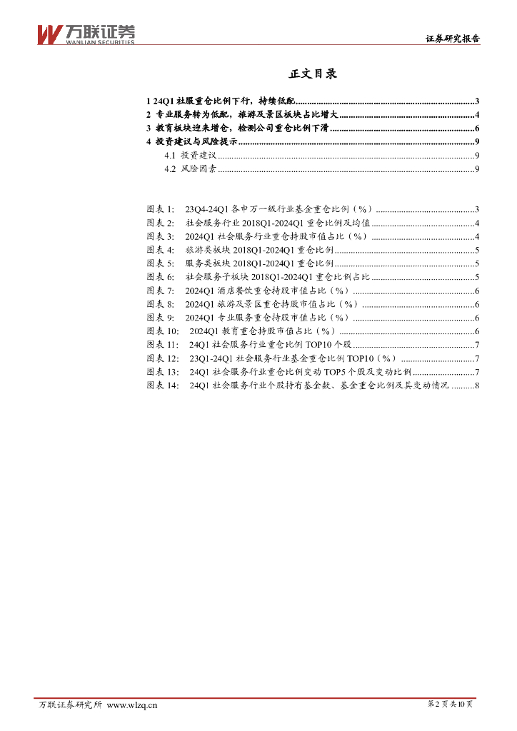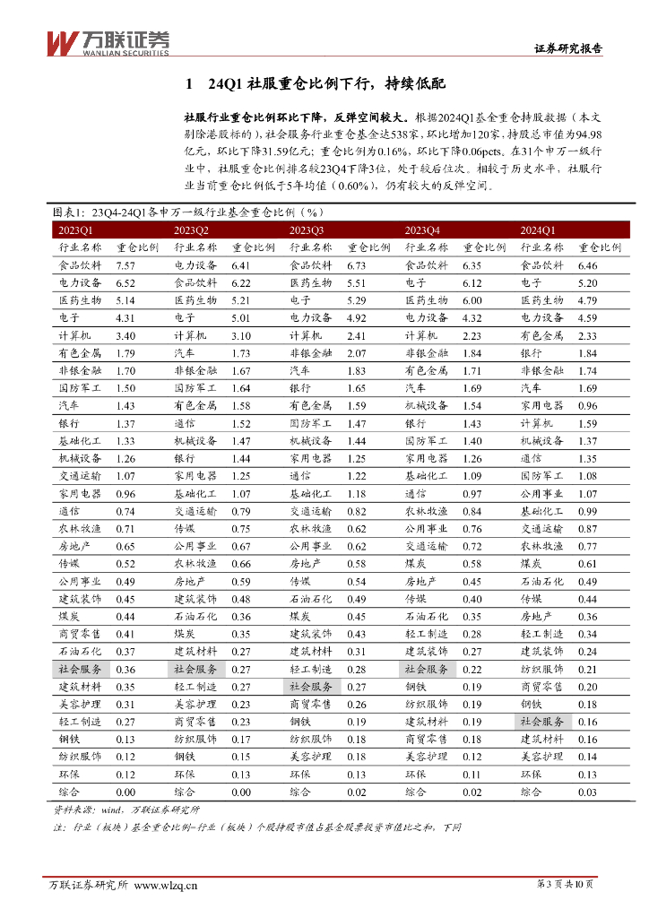 万联证券:社会服务行业2024Q1基金持仓分析:社服重仓比例下行,教育板块持续受基金关注.pdf