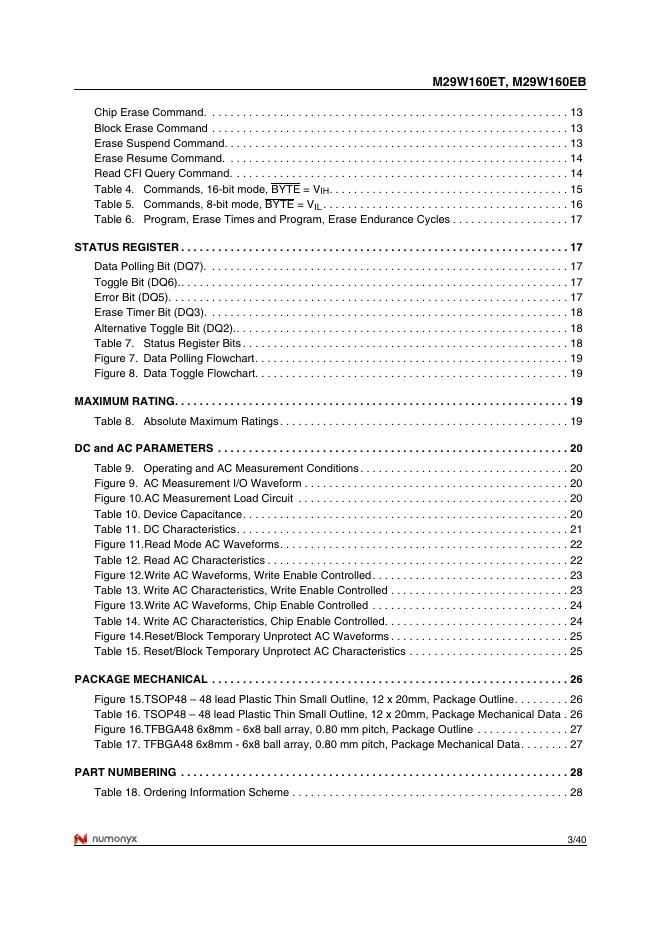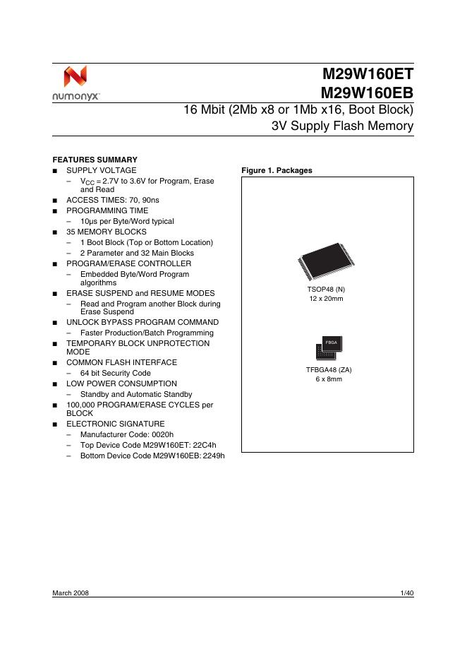 NUMONYX M29W160ET M29W160EB 16 Mbit (2Mb x8 or 1Mb x16, Boot Block) 3V Supply Flash Memory 使用手册.pdf