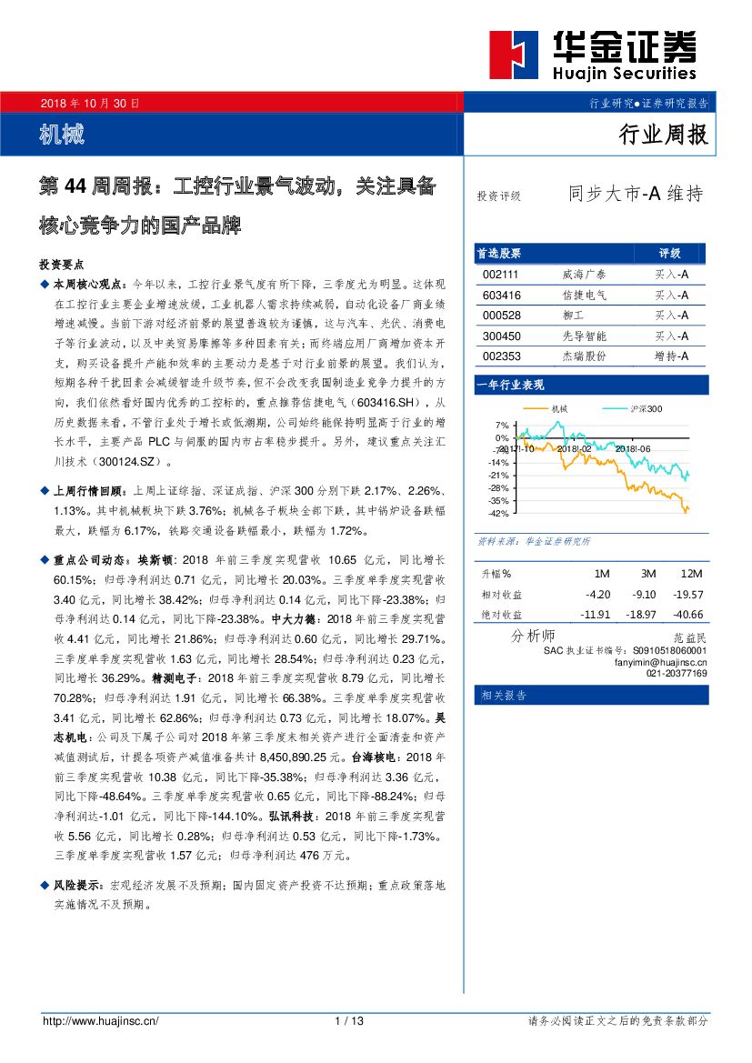 华金证券:机械行业第44周周报:工控行业景气波动,关注具备核心竞争力的国产品牌.pdf