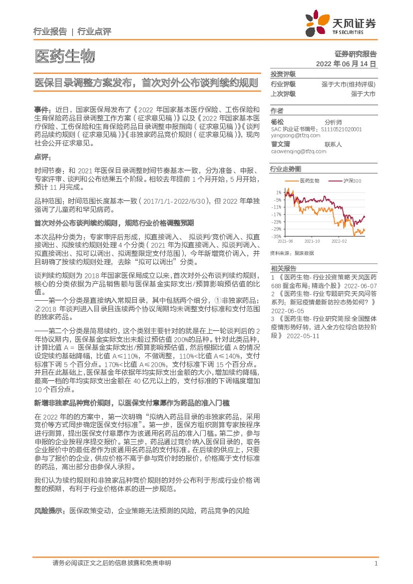 天风证券:医药生物行业点评:医保目录调整方案发布,首次对外公布谈判续约规则.pdf