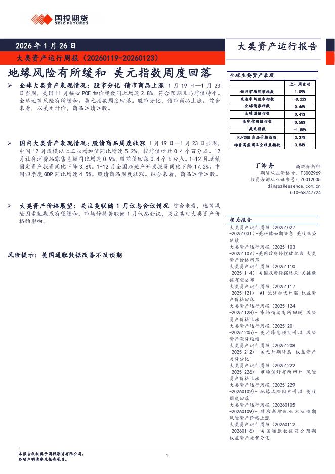 国投期货:大类资产运行周报:地缘风险有所缓和美元指数周度回落-260126.pdf