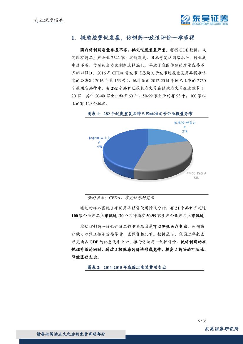 东吴证券:医药生物:一致性评价如火如荼,先行者及出口转内销企业有望率先享受政策红利.pdf