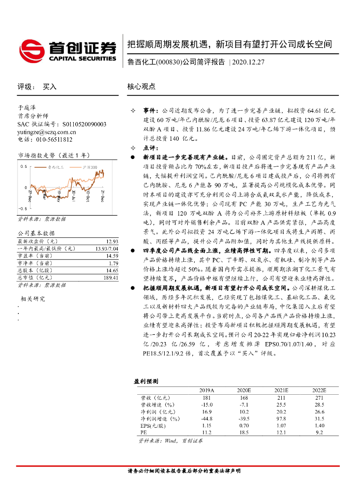 首创证券:鲁西化工(000830)-公司简评报告:把握顺周期发展机遇,新项目有望打开公司成长空间.pdf