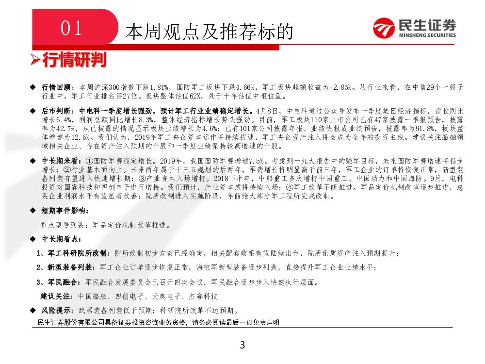 民生证券:国防军工行业周报:中电科一季度增长强劲,预计军工行业业绩稳定增长.pdf