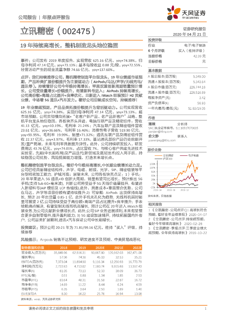 天风证券:立讯精密(002475)-19年持续高增长,整机制造龙头地位稳固.pdf