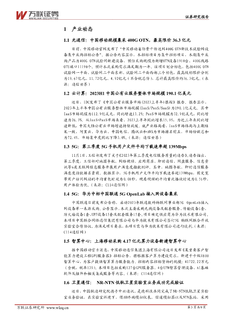 万联证券:通信行业周观点:华为中标中国联通设备集采,移动招标建设智算中心.pdf