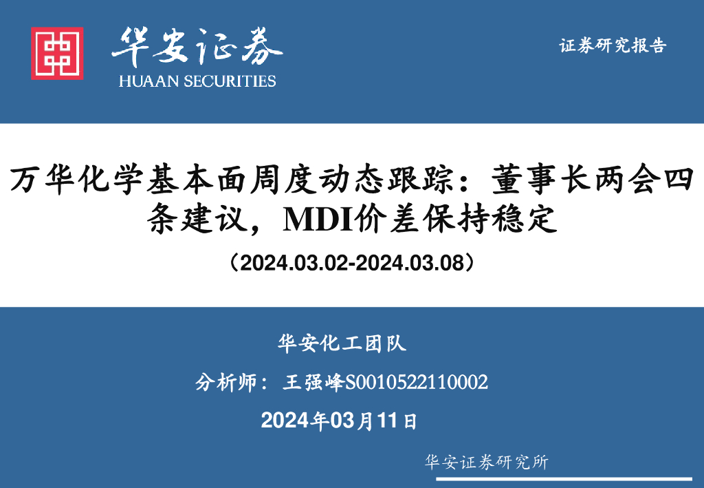 华安证券:万华化学基本面周度动态跟踪:董事长两会四条建议,MDI价差保持稳定.pdf