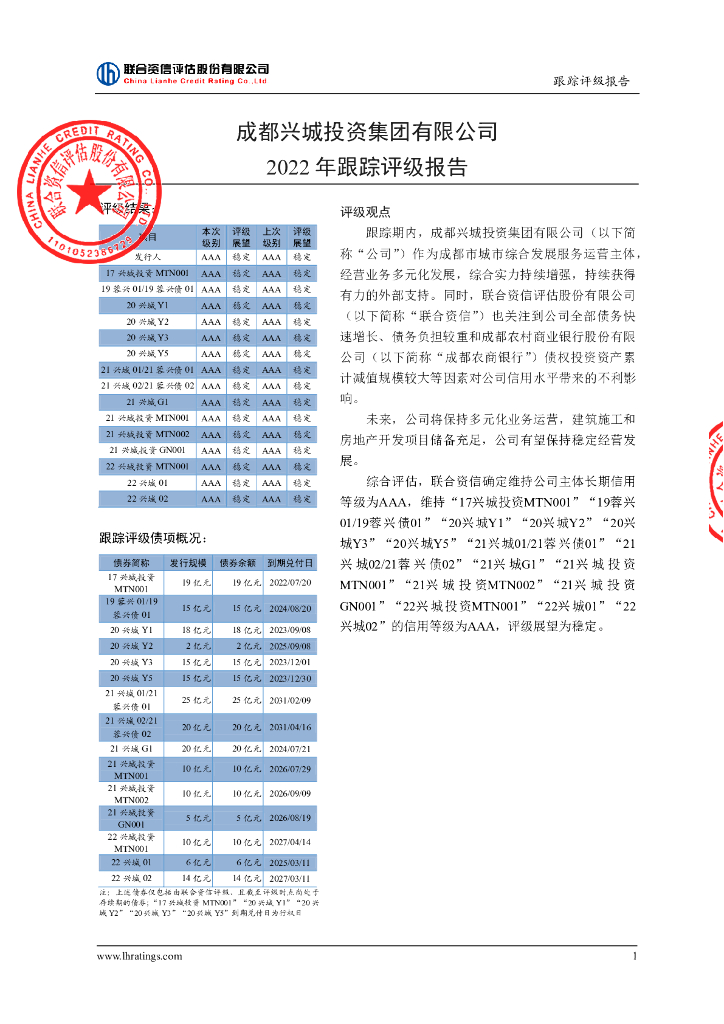 联合资信:成都兴城投资集团有限公司2022年跟踪评级报告.pdf