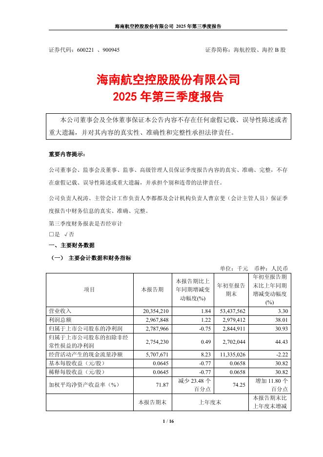 600221-海航控股:2025年第三季度报告.pdf
