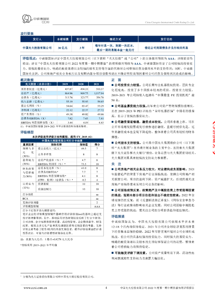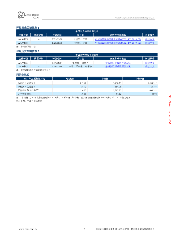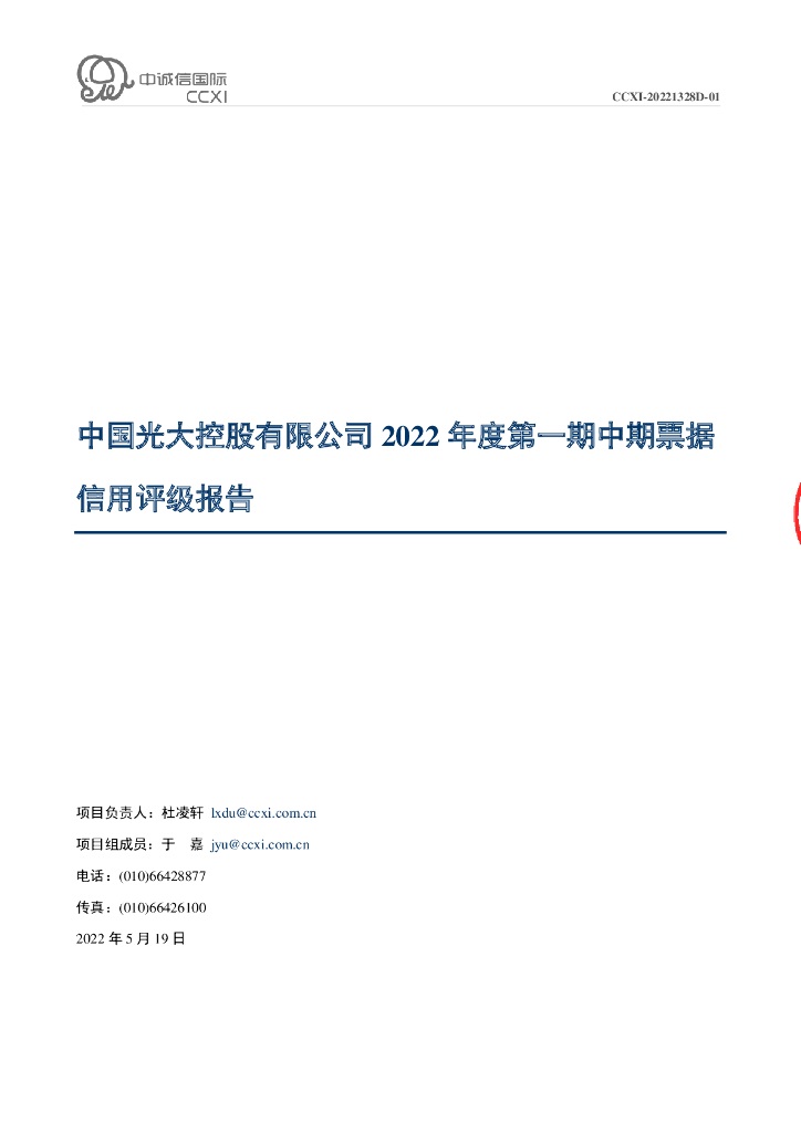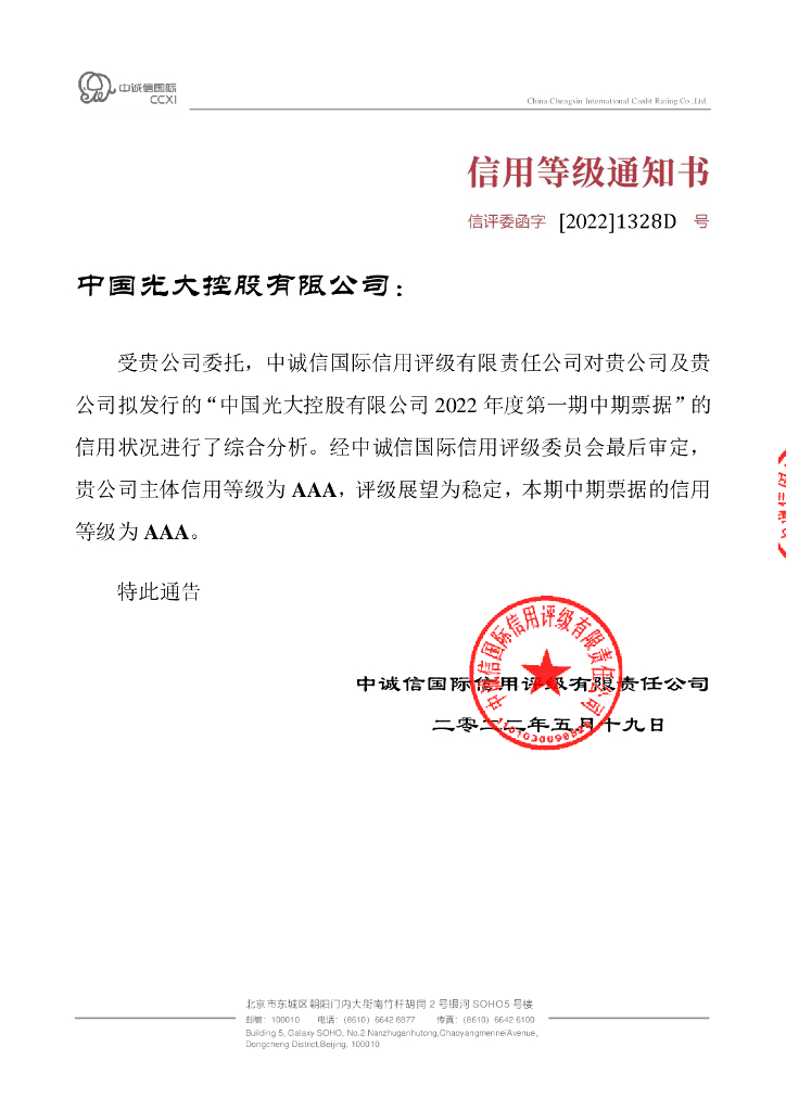 中诚信:中国光大控股有限公司2022年度第一期中期票据信用评级报告.pdf