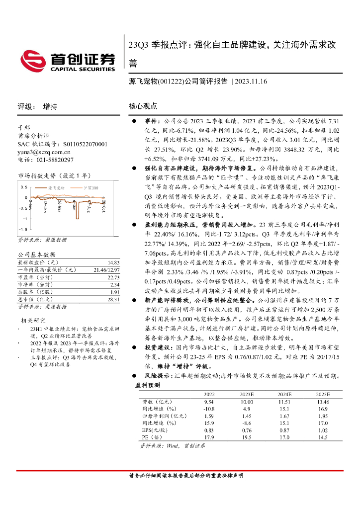 首创证券:源飞宠物(001222)-23Q3季报点评:强化自主品牌建设,关注海外需求改善.pdf